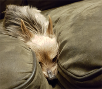 Miku loved to squeeze into tight little nooks and crannies. Here she is nestled between couch cushions.